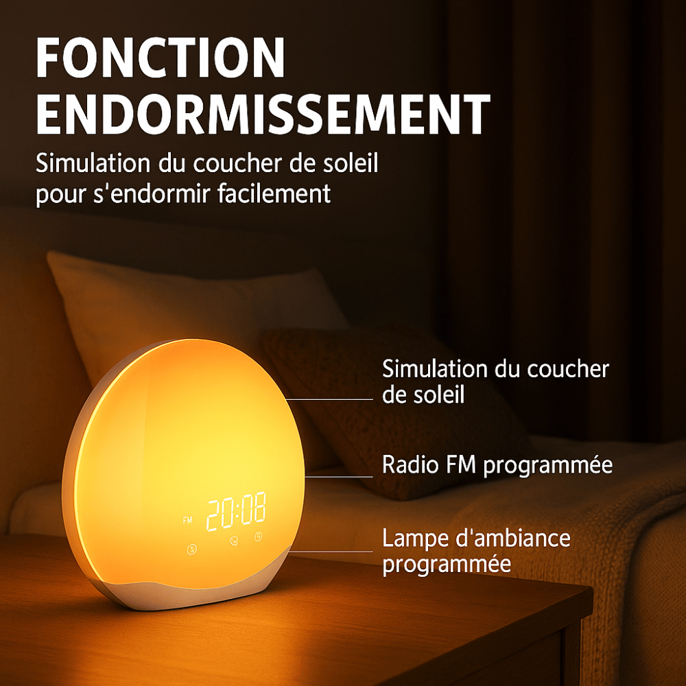 - Fonction aide au sommeil : Simulation de coucher de soleil