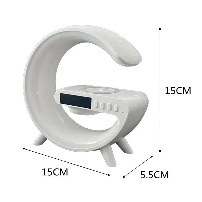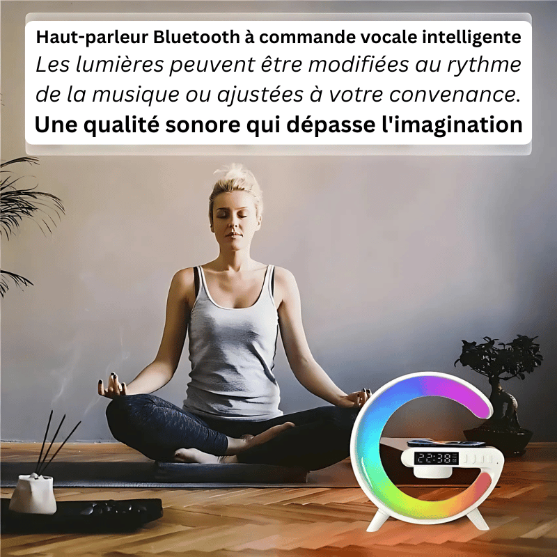 Station de Charge Intelligente 15W avec Éclairage RGB, Enceinte Bluetooth et Réveil