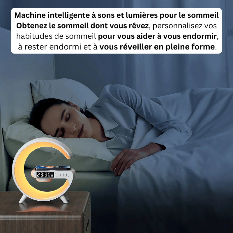 Transformez votre table de nuit avec cette station de charge tout-en-un qui réinvente votre expérience quotidienne. Combinant charge rapide sans fil, enceinte Bluetooth haute qualité et éclairage d'ambiance personnalisable, cet appareil devient le compagnon idéal de vos journées et vos nuits.